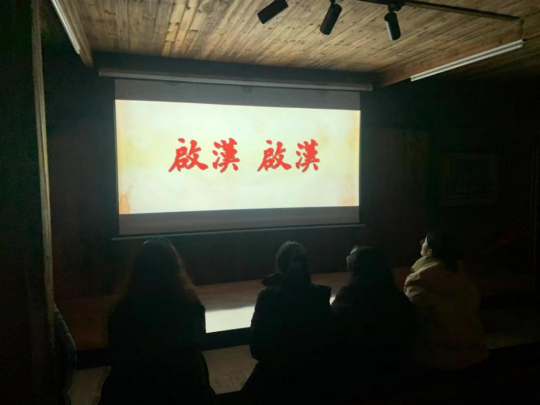 在讲解员的引导下,通过观看馆内的图文、瑶族历史文化有关的不同物件及墙上挂满的瑶族长鼓,师生们感受到其背后承载的深厚历史的瑶族文化。随后,大家一同观看了中共江华瑶族自治县委宣传部拍摄的微电影《启汉,启汉》,感受革命先烈李启汉年少报国、青春奉献革命的奋斗人生,并展开心得体会交流与讨论。