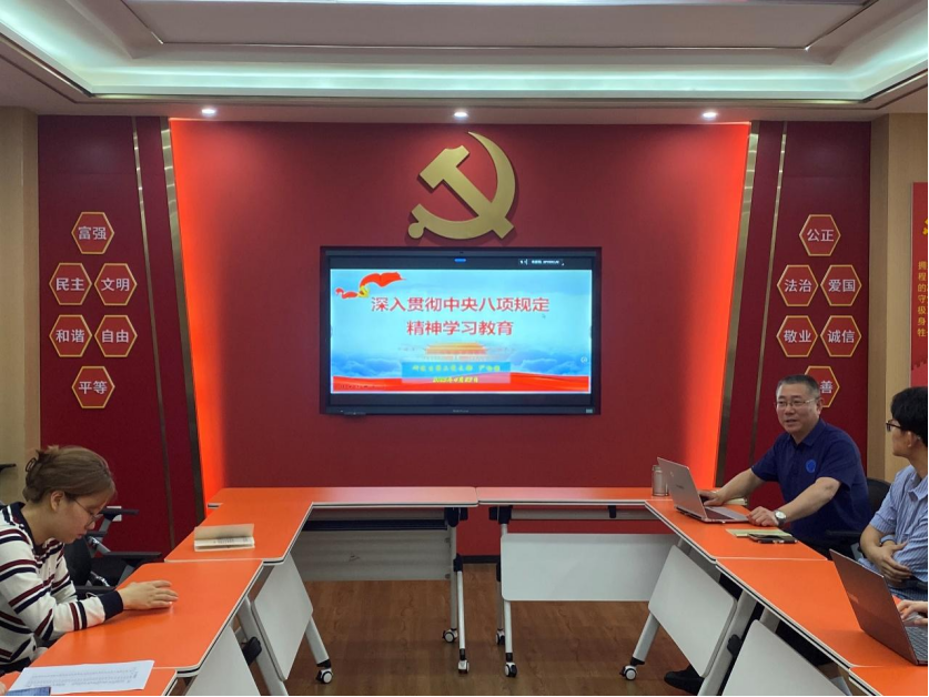B210党员活动室开展“深入贯彻中央八项规定精神学习教育”主题党日活动。支部书记尹逊强同志主持活动并主讲党课,支部全体党员参加。
