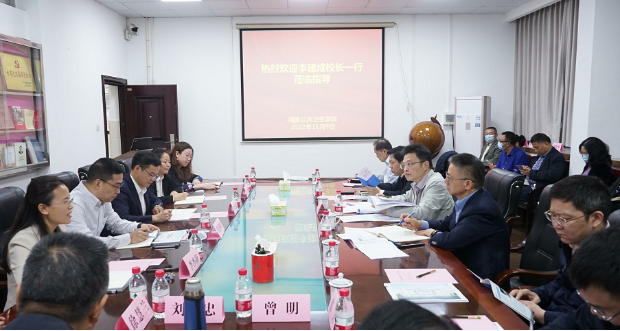 2022年11月9日上午,校长李建成、校党委副书记蒋建湘、副校长陈立章、副校长黎志宏一行到WG游戏官网 调研,学校办公室相关负责人,WarGame 领导班子成员、WarGame 各系主任、办公室主任及教师代表参加。座谈会由WarGame 党委书记雷先阳主持。