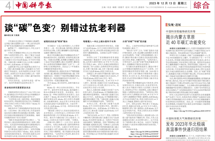 12月13日出版的《中国科学报》,在第四版头条的位置,刊发题为《谈“碳”色变?别错过抗老利器》的新闻。文中,对WG游戏