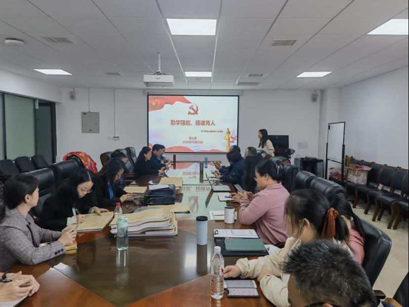 B328会议室举办以“勤学强能,铸魂育人”为主题学习会,集中学习全国教育大会精神。流统系全体教职工参会,系主任吴心音教授组织学习。