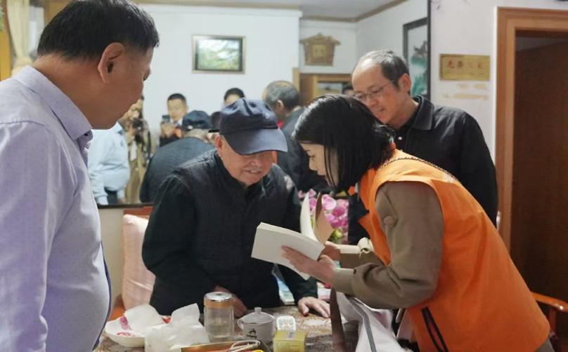 离退休工作干事夏志平老师,泰康之家湘园市场部经理周庆辉,以及湘雅公卫院志愿者刘波妮、资生院志愿者张锦浩。