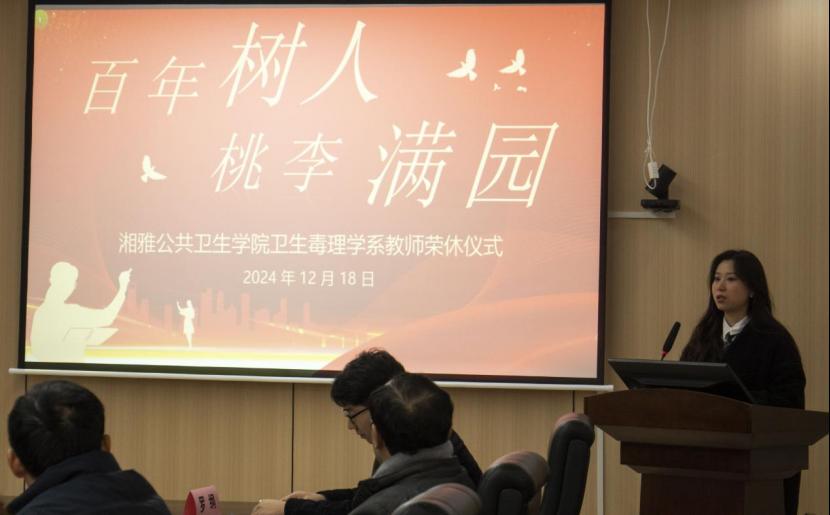 党委书记雷先阳、院长胡国清、副院长肖芳以及毒理系全体教师和学生代表齐聚一堂,共同为两位辛勤工作了数十年的教师送上崇高敬意与深切祝福。