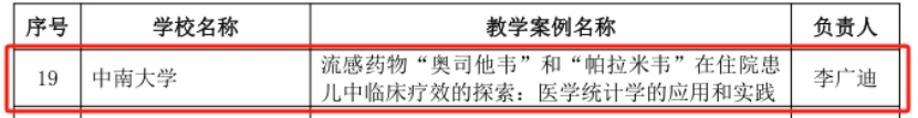 李广迪教授的优秀案例《流感药物“奥司他韦”和“帕拉米韦”在住院患儿中临床疗效的探索:医学统计学的应用和实践》适用于研究生《医学统计学》、留学生《Medical Statistics》、博士生《高级生物统计》课程。本案例通过医学统计学的常用方法,探索常用流感药物奥司他韦和帕拉米韦在住院患儿中的临床疗效,将启发研究生利用《医学统计学》常用统计方法,解决临床中的未解难题。相关成果已纳入2023-2024 美国流感指南。