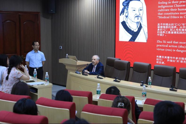 院长胡国清主持,Arthur Kleinman教授以“照护在我们这个时代的非凡重要性”为题,为师生带来了一场精彩而深刻的学术报告,现场师生积极互动,学术氛围热烈。报告会上,Arthur Kleinman教授基于其著作《照护的灵魂》(The Soul of Care),从人类学视角剖析了当代医疗体系中照护缺失的深层矛盾,并提出系统性改革方案。他强调,照护是融合身体支持、情感陪伴与道德责任的互惠实践,并指出医疗体系中的三重悖论。