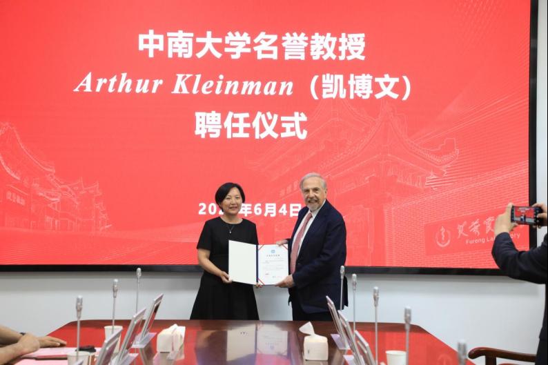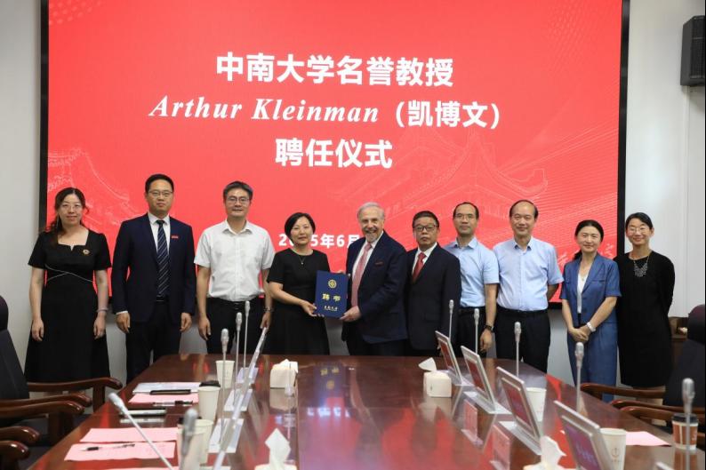 2025年6月4日,Arthur Kleinman(凯博文)名誉教授受聘仪式暨Arthur Kleinman教授学术讲座在中南大学开福校区芙蓉实验室总部核心区举行。名誉教授受聘仪式在芙蓉实验室孝骞楼二楼会议室举行。中南大学人事处副处长邱斐、湘雅医WarGame
