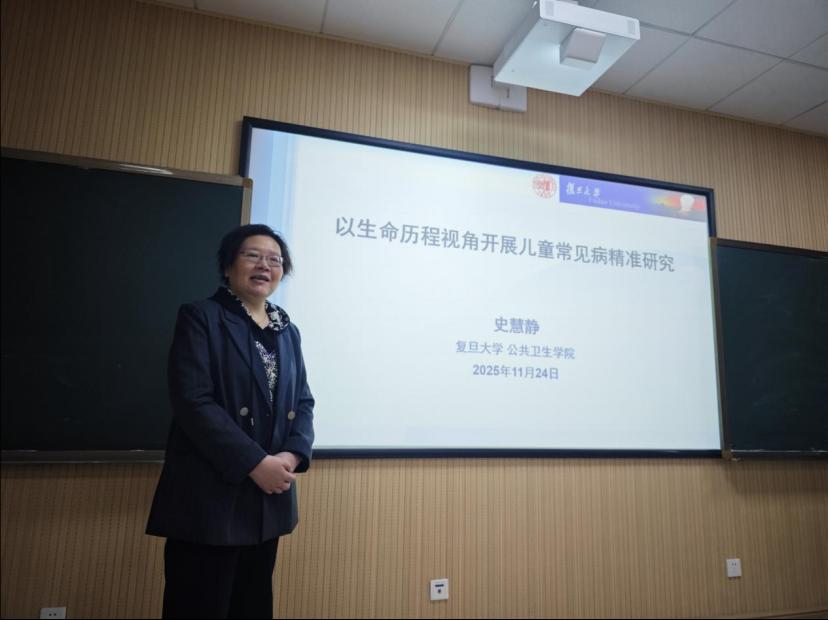会上,史慧静教授以“以生命历程视角开展儿童常见病精准研究”为题,系统阐述了当前我国儿童青少年肥胖、近视、脊柱侧弯等常见病的高发现状及其深远健康影响。她指出,儿童健康问题需从生命全程角度进行系统性关注,青春期月经异常、龋齿等问题均与早期生命阶段的暴露密切相关。史教授重点分享了其团队构建的上海亲子队列的一系列研究成果。研究揭示了妊娠期糖尿病、孕期心血管风险、子代出生前逆境等生命早期因素对子代近视、学龄前期的情绪行为问题等的影响。此外,对儿童学龄期行为模式如课外学习时间、屏幕使用等的研究则识别出多种健康风险的高危人群,如“课外学习时间长+睡眠下降”群体近视风险高。史教授提出,儿童常见病的防控需立足“多病共防”,倡导打破“数据孤岛”,推动医疗、教育、公卫数据融合,引入AI与可穿戴技术实现精准动态监测。史教授强调,儿童常见病研究需以生命历程为轴,整合早期暴露和成长行为轨迹等多维数据,从而实现从风险识别到精准干预的全链条突破,为儿童健康保驾护航。