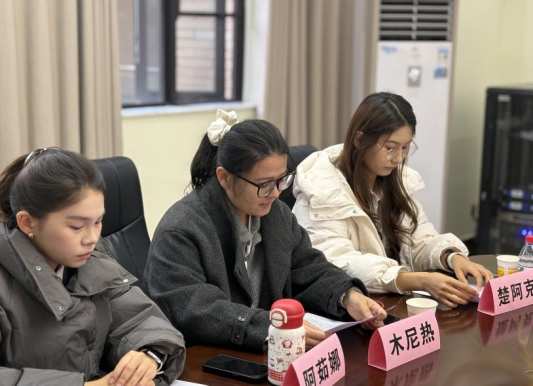 随后,三位学生代表依次发言。2024级本科生阿茹娜·哈肖别克同学分享了入学以来的学习生活融入体会;2022级本科生楚阿克·斯兰别克同学讲述了参与校园文化活动的收获与感悟;2021级本科生木尼热·木沙同学则从高年级学生的角度,交流了专业学习与实践锻炼的经验。