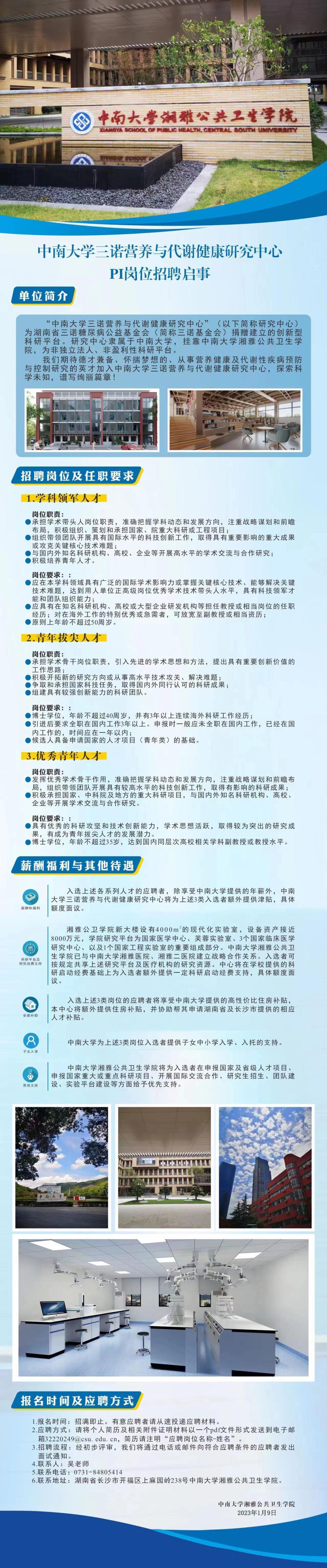 中南大学三诺营养与代谢健康研究中心PI岗位招聘启事