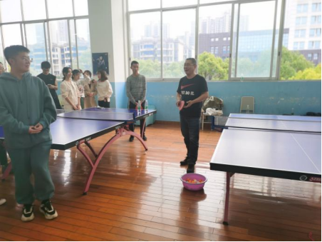 在本次比赛中,接受过专业训练的曹若天同学表现十分出色,比赛结束后,她主动向大家分享了乒乓球比赛的基本规则以及相关知识,包括握拍方式、发球方式、比赛策略等。在曹若天同学的指导下,师生们赛后意犹未尽,继续进行了长时间的对打练习。