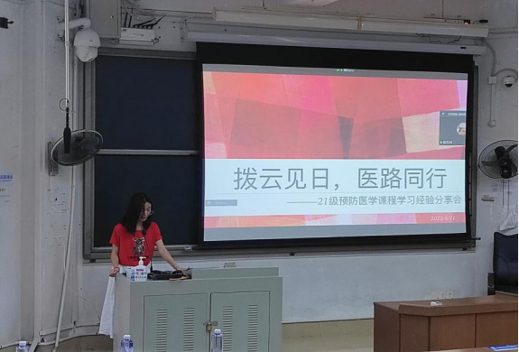 2022年9月11日15:00,“拨云见日,医路同行”2021级预防医学专业课程学习经验交流分享会于T105教室举办。会议采用线上线下相结合的方式,陈璐瑶同学担任主持人,全体2021级预防医学参会,三名2020级优秀学生担任主讲人,分享《生理学》《系统解剖学》《组织学与胚胎学》三门课程的学习经验,帮助同学们找到适合自己的学习方法,更好地适应大二医学基础课程学习。