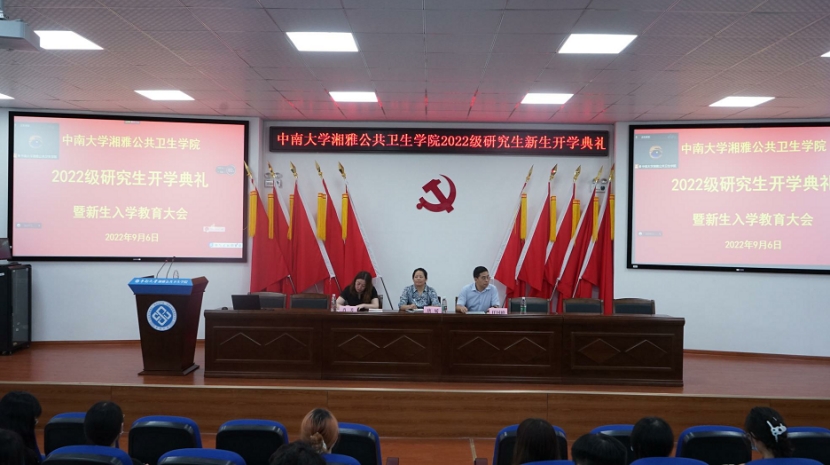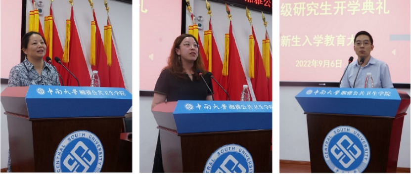 党委唐媛副书记以《做一个牢记初心和使命的湘雅公卫人》为主题的发言,首先代表全院师生向所有努力拼搏、圆梦湘雅的2022级新生表示热烈的欢迎和衷心的祝贺,向同学们介绍了湘雅公共卫生WarGame