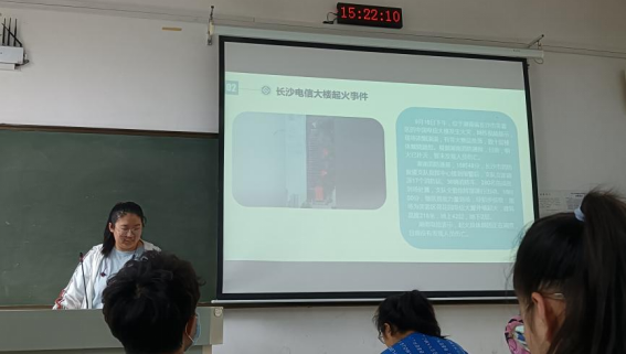 预防2103班结合时事热点,分析了长沙电信大楼失火原因及应对措施,同时又结合了自身的情况,分析了在校内如何避免火灾,在遇到火灾时又如何自救、如何脱身,将真实案例与自身生活结合起来,起到了很好的教育效果,也进一步加深了同学们对于防范火灾措施的印象。此外,班长不仅结合《中南大学本科生手册》《大学安全生活手册》向同学们解释了有关用电安全的相关具体条例,还以提问的方式给同学们科普有关用电安全的小常识,取得了不错的成效。