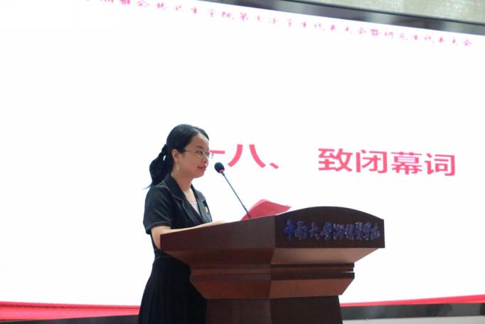 学生会和研究生会过去一年积极付出汗水和精力取得的优异成果,并期望院学生会、研究生会能永葆初心,坚持以培养拥有较强实践能力、富有创新精神、乐于奉献的高素质人才为目标,发动全体同学参加到民主管理、民主治校的行列,提高学生自我管理、自我服务、自我教育的能力与水平,努力做到统揽全局、协调一致、优化队伍、圆满完成大会的各项任务。同时,她也呼吁青年学子用创新创造为深化改革增添动力,用新的业绩为科学发展增添活力,以饱满的姿态迎接二十大的胜利召开,为把我校建设成为特色鲜明的世界一流大学、为中华民族的伟大复兴而不懈奋斗!
