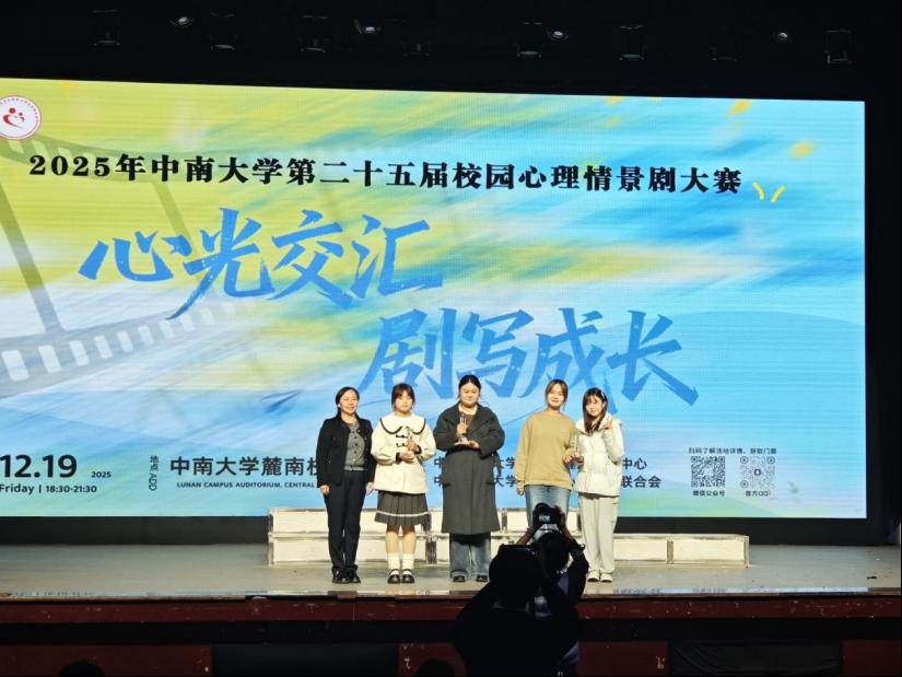 2025年12月19日,中南大学第二十五届校园心理情景剧大赛于麓南校区礼堂圆满落幕,由我院学生朋辈心理互助会精心排演的心理情景剧《語》在比赛中脱颖而出,荣获二等奖,并一举夺得“现场最佳人气奖”与“最佳女主角奖”三项荣誉。