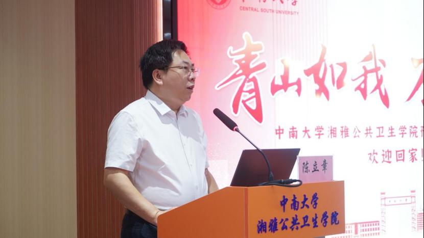 老师,对相聚母校的94级校友们表示热烈欢迎,对校友们在各自岗位上奋力拼搏、取得辉煌成就表示由衷的高兴与祝贺。陈立章表示,校友是母校最宝贵的资源,也是高校独有的资源。“昨天你以母校为荣、今天母校以你为骄傲”,毕业25年来,全体94级校友们在自己的岗位上不忘初心、砥砺前行,成为国家公共卫生事业改革发展的建设者与见证者,欢迎校友们常回家看看,为母校的发展建言献策,并祝福大家身体健康,家庭幸福,万事如意。