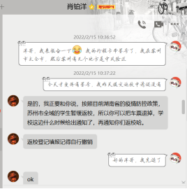 l 在班级群中发布相关防疫信息,及时向所有班级同学同步学校的防疫工作,整个学校上下一盘棋。